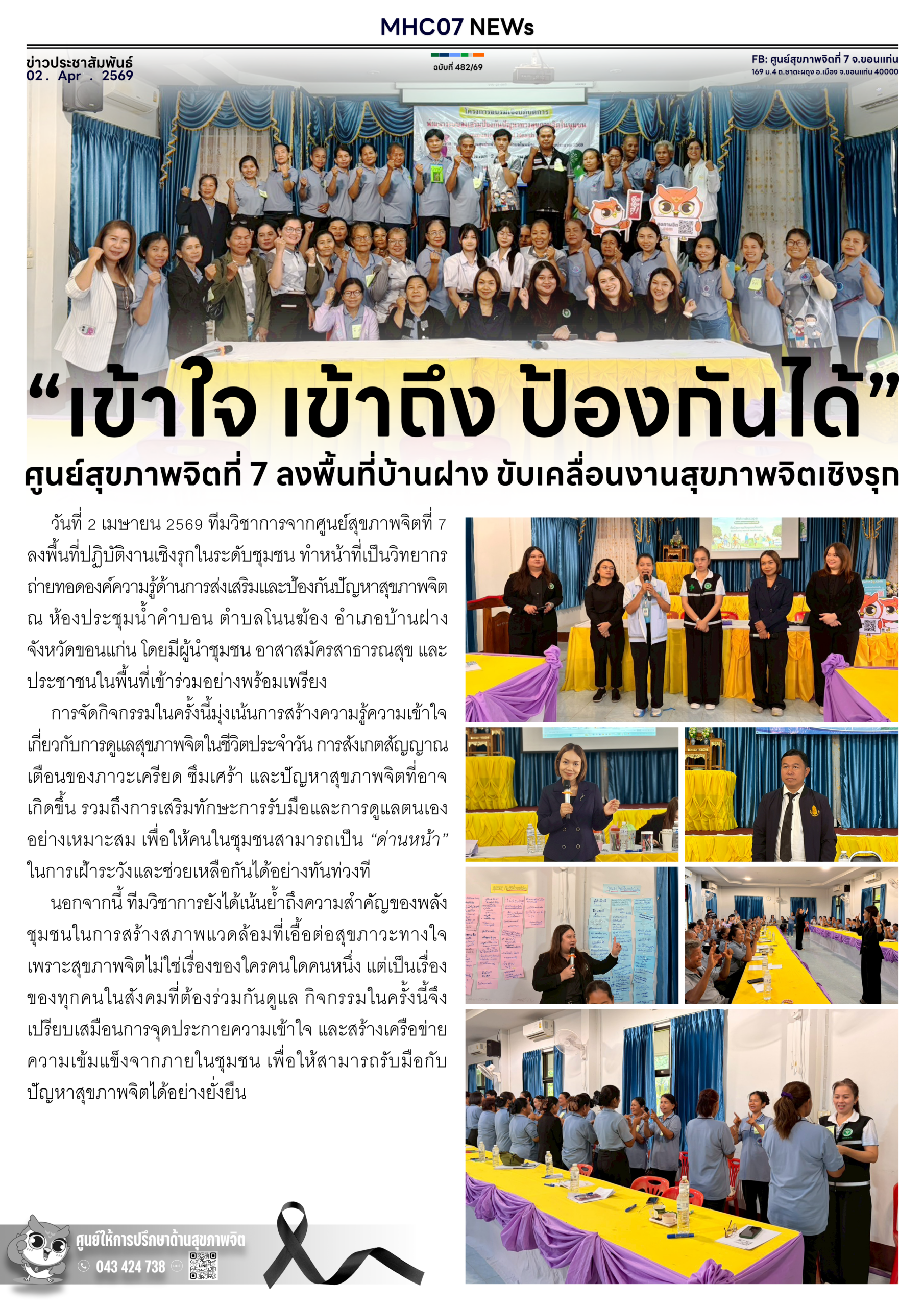 “เข้าใจ เข้าถึง ป้องกันได้”ศูนย์สุขภาพจิตที่ 7 ลงพื้นที่บ้านฝาง ขับเคลื่อนงานสุขภาพจิตเชิงรุก 02 เมษายน 2026adminข่าวประชาสัมพันธ์ Views: 11