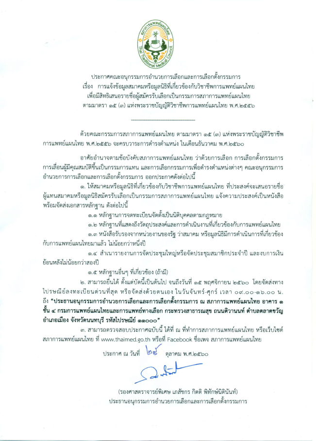 ประกาศคณะอนุกรรมการอำนวยการเลือกและการเลือกตั้งกรรมการ เรื่อง การแจ้งข้อมูลสมาคมหรือมูลนิธิเกี่ยวข้องกับวิชาชีพการแพทย์แผนไทย เพื่อมีสิทธิเสนอรายชื่อผู้สมัครรับเลือกเป็นกรรมการสภาฯ ตามมาตรา 15(3) แห่งพรบ.วิชาชีพ 03 พฤศจิกายน 2017adminข่าวประกาศ รายละเอียด Views: 941