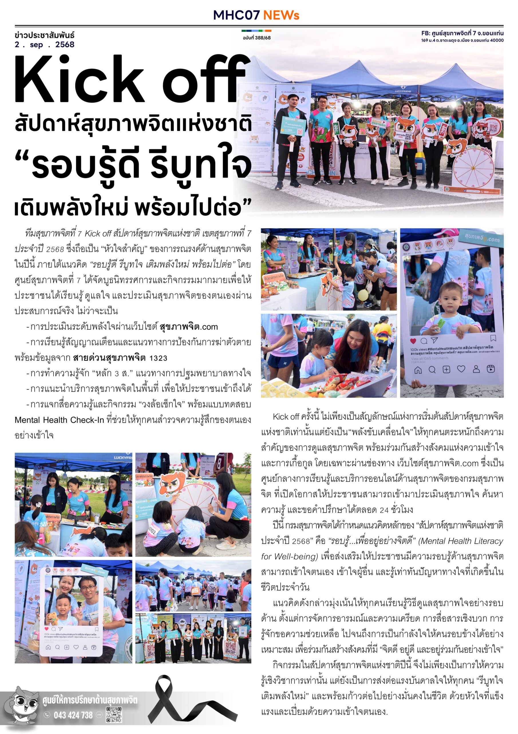 Kick off สัปดาห์สุขภาพจิตแห่งชาติ”รอบรู้ดี รีบูทใจเติมพลังใหม่ พร้อมไปต่อ” 03 พฤศจิกายน 202503 พฤศจิกายน 2025adminข่าวประชาสัมพันธ์ Views: 12