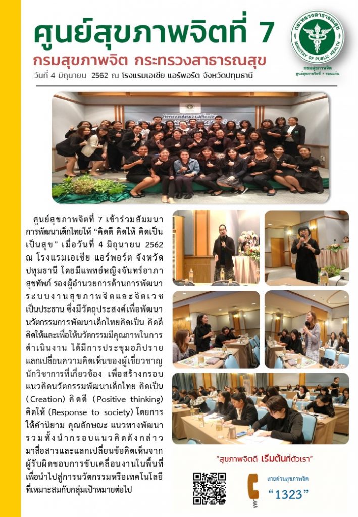 งานสัมมนาการพัฒนาเด็กไทยให้คิดดี คิดให้ คิดเป็น เป็นสุข ในวันที่ 4 มิถุนายน 2562 ณ โรงแรมเอเชีย แอร์พอร์ต จังหวัดปทุมธานี 06 มิถุนายน 201906 มิถุนายน 2019adminข่าวประกาศ Views: 958