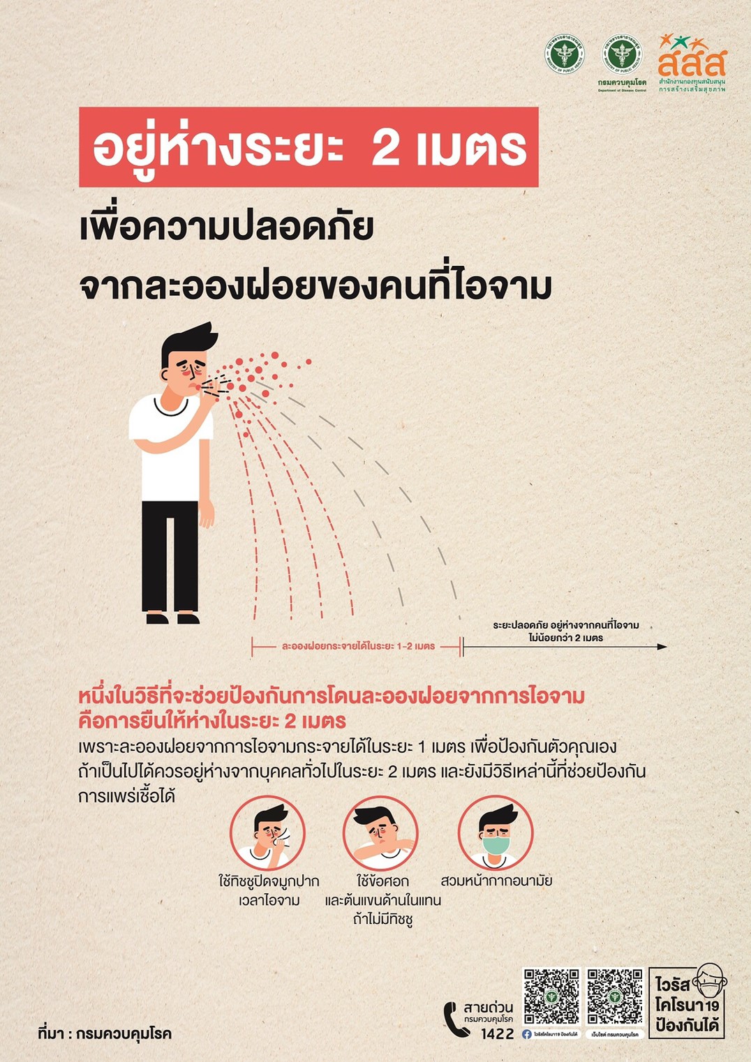 อยู่ห่างระยะ 2 เมตร เพื่อความปลอดภัยจากละอองฝอยของคนที่ไอจาม 08 มีนาคม 202008 มีนาคม 2020adminข่าวประกาศ, บทความสุขภาพจิต, สื่อสุขภาพจิต Views: 1,213