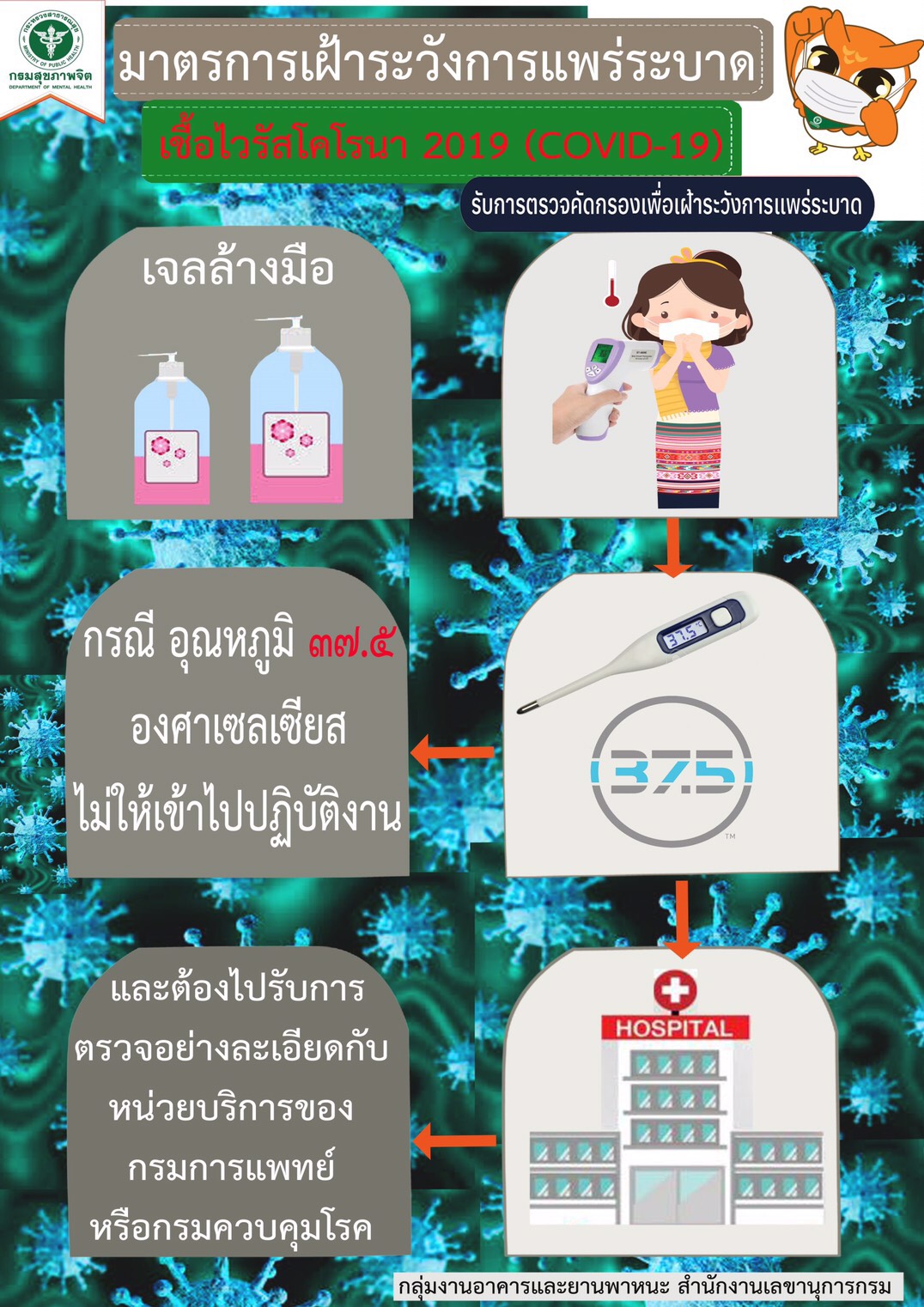 มาตรการเฝ้าระวังการแพร่ระบาด COVID-19 08 มีนาคม 202008 มีนาคม 2020adminข่าวประกาศ, บทความสุขภาพจิต, สื่อสุขภาพจิต Views: 1,142