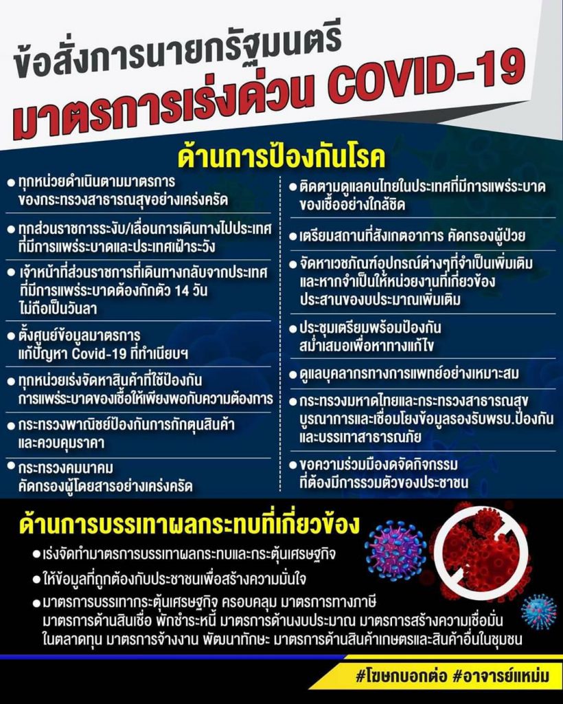 ข้อสั่งการนายกรัฐมนตรี มาตรการเร่งด่วน COVID-19 08 มีนาคม 202008 มีนาคม 2020adminข่าวประกาศ, สื่อสุขภาพจิต Views: 926