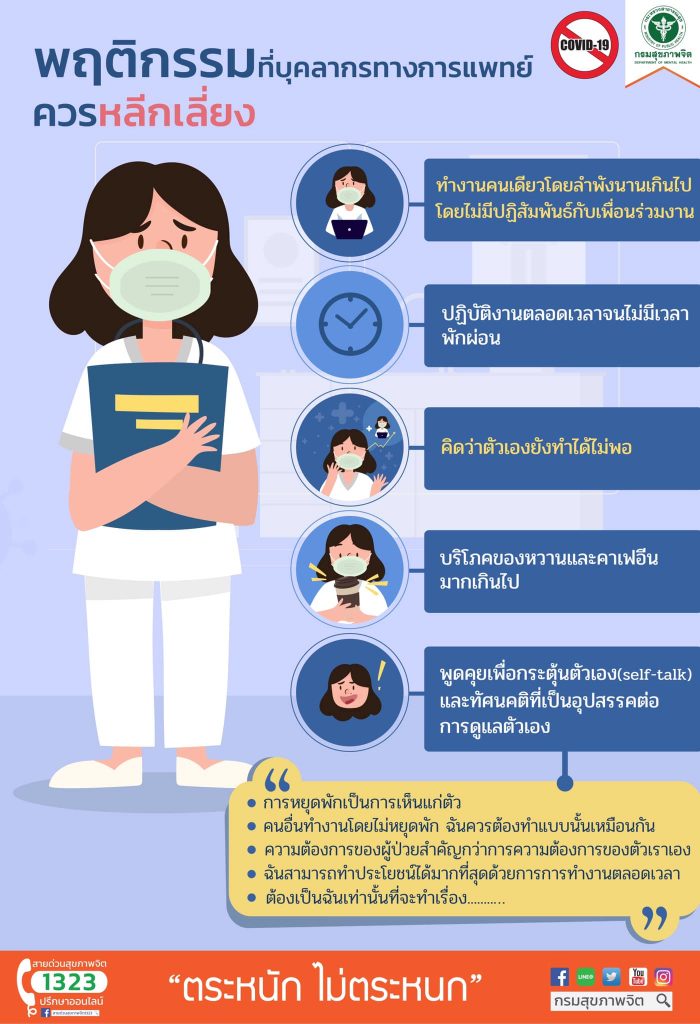การจัดการความเครียดและพฤติกรรมที่ควรหลีกเลี่ยง สำหรับบุคลากรทางการแพทย์ที่ปฏิบัติงานช่วงการระบาดของโควิด-19