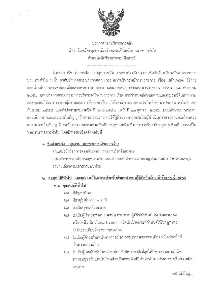 กองบริหารการคลัง กรมสุขภาพจิต กระทรวงสาธารณสุข รับสมัครบุคคลเพื่อเลือกสรรเป็นพนักงานราชการ ตำแหน่งนักวิชาการคอมพิวเตอร์เปิดรับสมัคร 16-30 พฤศจิกายน 2563รายละเอียด >> https://finance.dmh.go.th/news/view.asp?id=1864