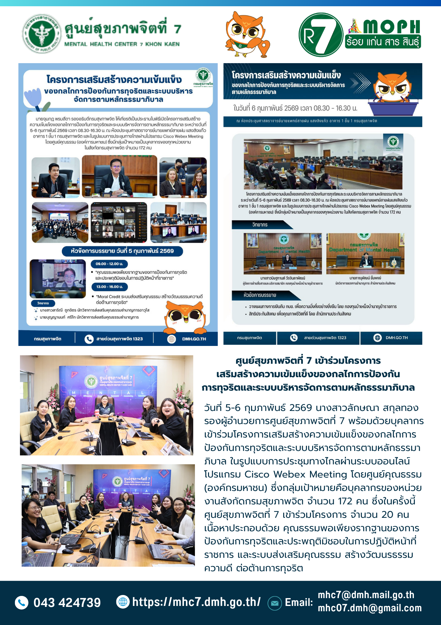 ศูนย์สุขภาพจิตที่ 7 เข้าร่วมโครงการเสริมสร้างความเข้มแข็งของกลไกการป้องกันการทุจริตและระบบบริหารจัดการตามหลักธรรมาภิบาล 18 เมษายน 202618 เมษายน 2026adminข่าวประชาสัมพันธ์ Views: 21