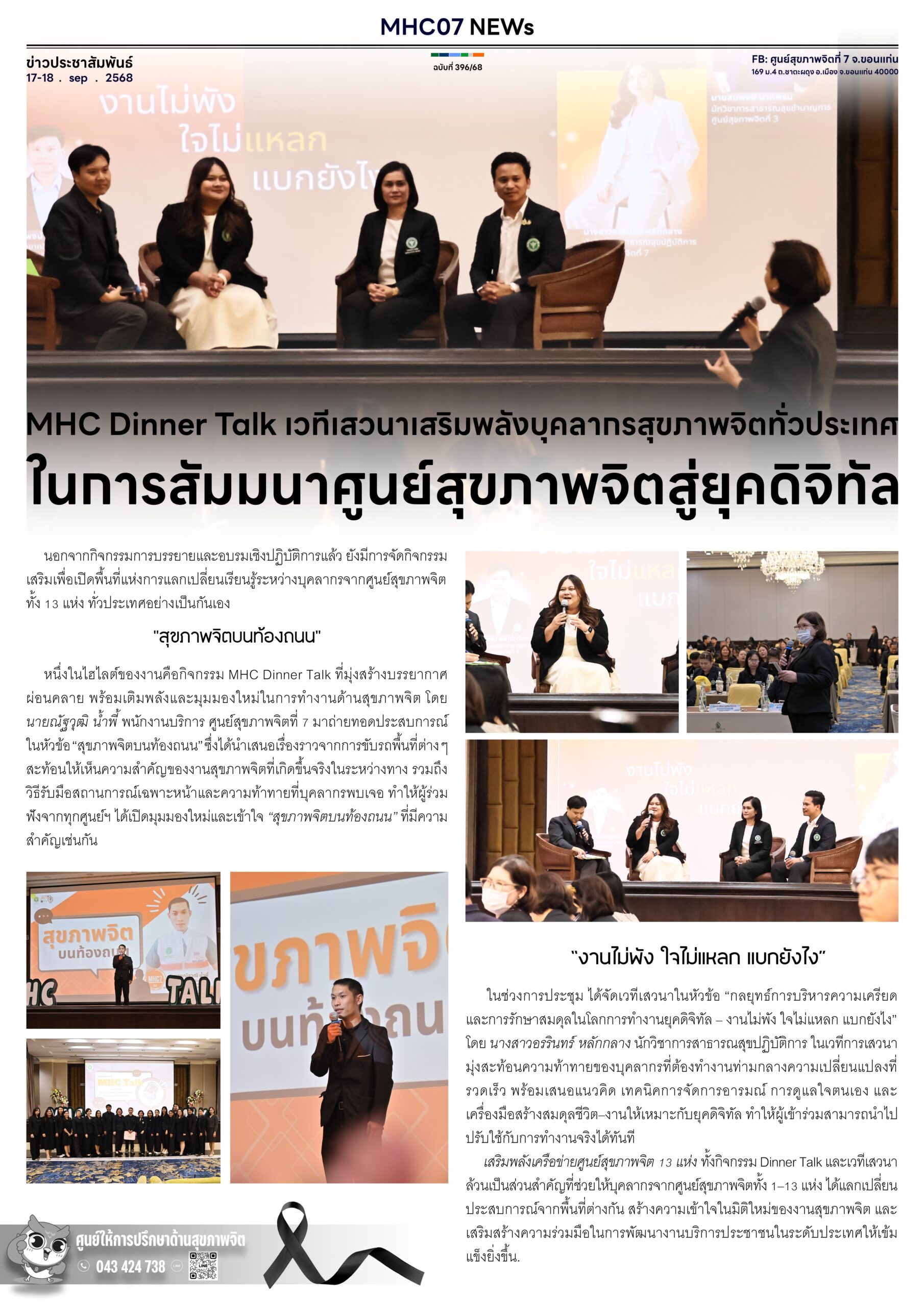 MHC Dinner Talk เวทีเสวนาเสริมพลังบุคลากรสุขภาพจิตทั่วประเทศในการสัมมนาศูนย์สุขภาพจิตสู่ยุคดิจิทัล 19 พฤศจิกายน 202519 พฤศจิกายน 2025adminข่าวประชาสัมพันธ์ Views: 10