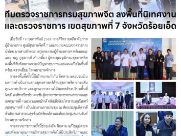 ทีมตรวจราชการกรมสุขภาพจิต ลงพื้นที่นิเทศงานและตรวจราชการ เขตสุขภาพที่ 7 จังหวัดร้อยเอ็ด 23 กุมภาพันธ์ 2026adminข่าวประชาสัมพันธ์