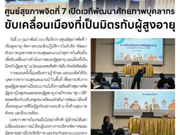 ศูนย์สุขภาพจิตที่ 7 เปิดเวทีพัฒนาศักยภาพบุคลากร ขับเคลื่อนเมืองที่เป็นมิตรกับผู้สูงอายุ 23 กุมภาพันธ์ 2026adminข่าวประชาสัมพันธ์