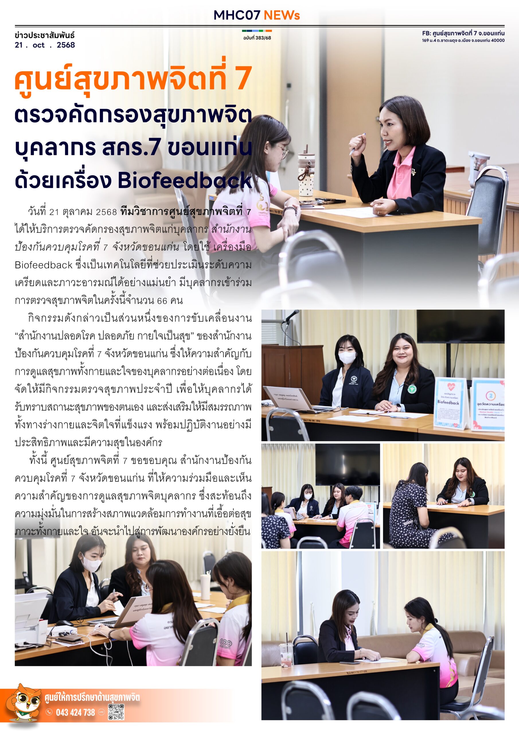 ศูนย์สุขภาพจิตที่ 7 ตรวจคัดกรองสุขภาพจิตบุคลากร สคร.7 ขอนแก่น ด้วยเครื่อง Biofeedback 23 ตุลาคม 202523 ตุลาคม 2025adminข่าวประชาสัมพันธ์ Views: 20