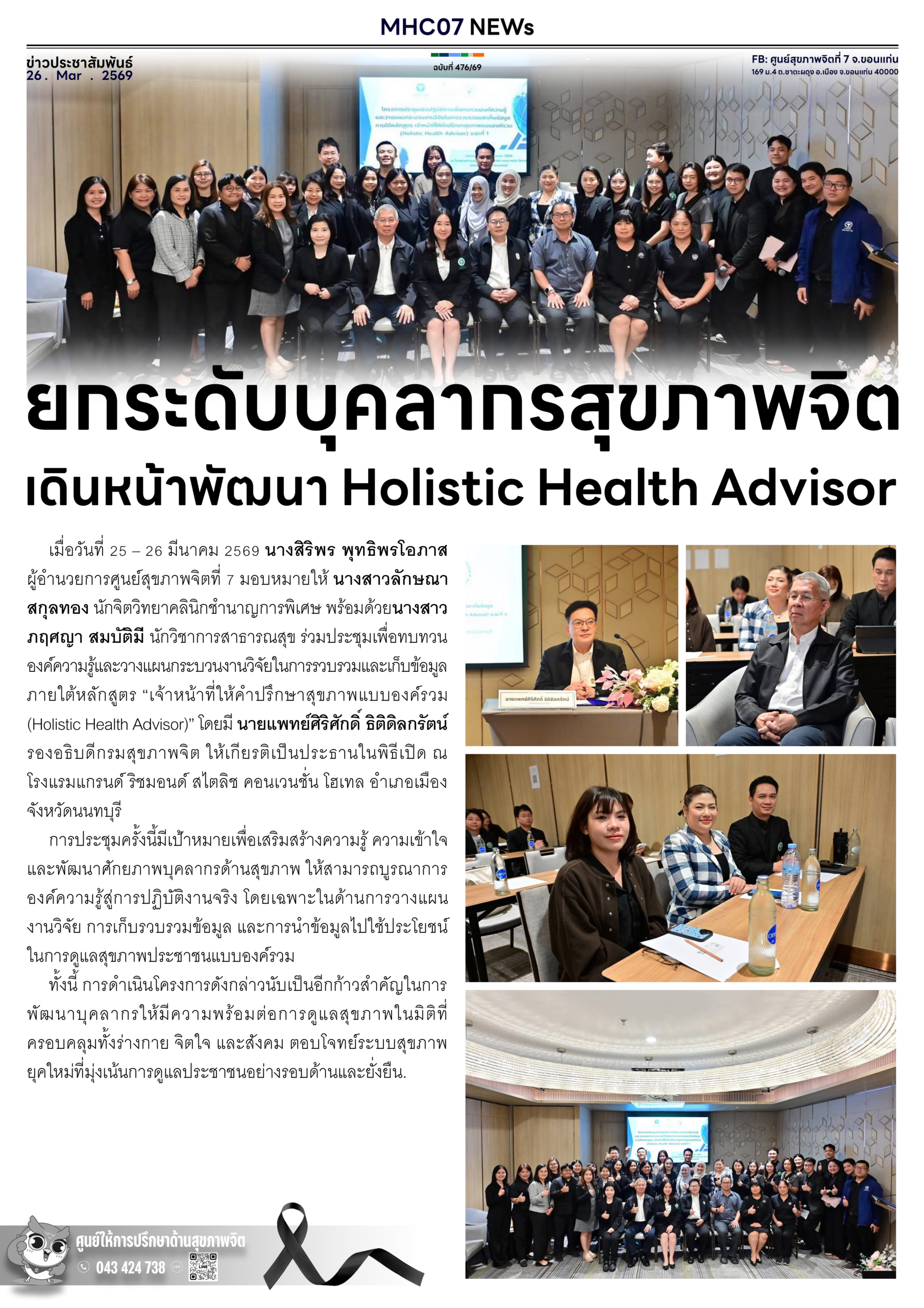 ยกระดับบุคลากรสุขภาพจิตเดินหน้าพัฒนา Holistic Health Advisor 26 มีนาคม 202626 มีนาคม 2026adminข่าวประชาสัมพันธ์ Views: 18
