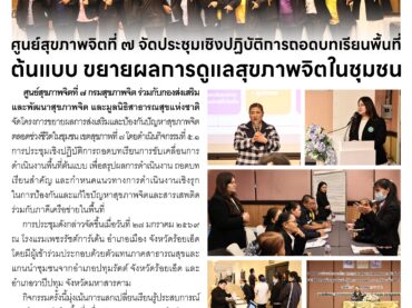 ศูนย์สุขภาพจิตที่ึ 7 จัดประชุมเชิงปฏิบัติการตอดบทเรียนพื้นที่ต้นแบบ ขยายผลการดูแลสุขภาพจิตในชุมชน 02 กุมภาพันธ์ 2026adminข่าวประชาสัมพันธ์