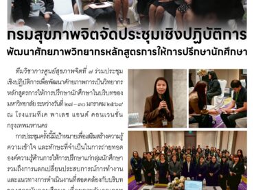 กรมสุขภาพจิตจัดประชุมเชิงปฏิบัติการพัฒนาศักยภาพวิทยากรหลักสูตรการให้การปรึกษานักศึกษา 02 กุมภาพันธ์ 2026adminข่าวประชาสัมพันธ์
