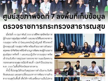 ศูนย์สุขภาพจิตที่ 7 ลงพื้นที่เก็บข้อมูลตรวจราชการกระทรวงสาธารณสุข 09 กุมภาพันธ์ 202609 กุมภาพันธ์ 2026adminข่าวประชาสัมพันธ์