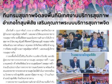 ทีมกรมสุขภาพจิตลงพื้นที่นิเทศงานบริการสุขภาพอำเภอโกสุมพิสัย เสริมคุณภาพระบบบริการสุขภาพจิต 09 กุมภาพันธ์ 2026adminข่าวประชาสัมพันธ์